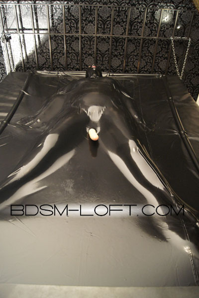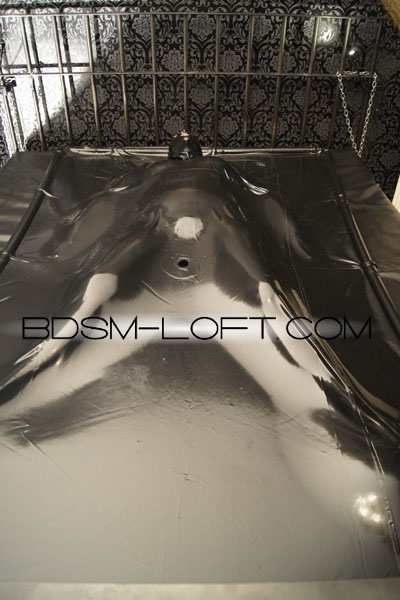 The photos here on this page and in the gallery show the Vac-Bed which is used in the BDSM-Loft. The dildo and the head mask do not belong to the equipment or Vac-Bed rental service. The Vac-bed can be used without a dildo and mask.